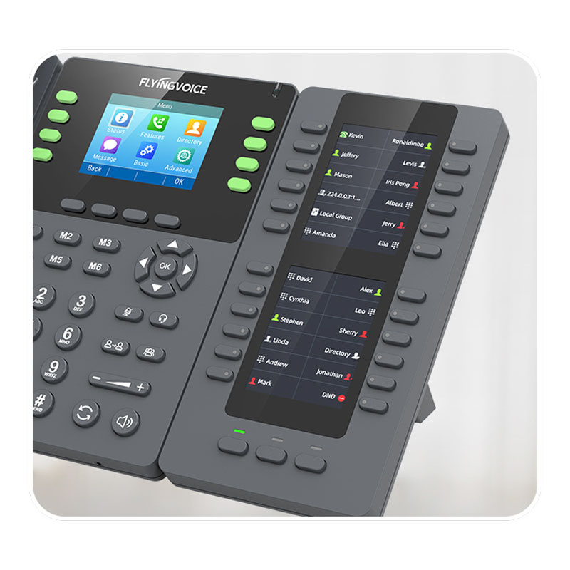 The Flyingvoice P2EXP is a versatile color-screen expansion module for P20/P20P/P20G/P21/P21P/P22P/P22G/P23G/P23GW and FIP15G Plus IP phones.