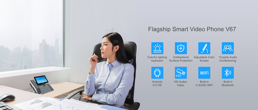 V67 is more than an efficient telephone but a delicate work of art, providing a smart and smooth business communication experience for executives and managers. As the flagship video phone featuring an adjustable touch screen and a cool lighting keypad, V67 is a perfect combination of elegant outside and powerful inside.