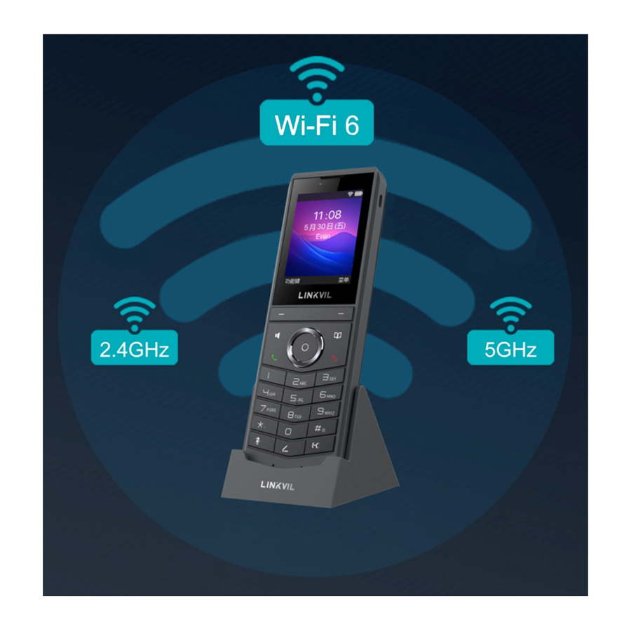 Fanvil LINKVIL W620W is a portable enterprise-grade Wi-Fi IP phone, specifically designed to meet modern mobile office requirements.Built-in Bluetooth 5.0 and dual-band 2.4GHz/5GHz Wi-Fi 6, combined with advanced seamless roaming technology, it delivers stable and efficient communication performance even in dynamic wireless network environments