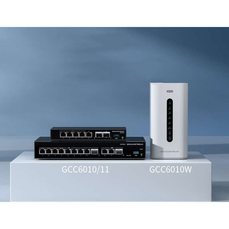 The Series includes three models: GCC6010, GCC6010W and GCC6011 A: GCC6010: 2 x 2.5 Gigabit SFP ports and 5 x Gigabit Ethernet ports 1xMicro-SD, 1xUSB 3.0, 1xReset, 2GB RAM, 32GB eMMC Flash ( No External Storage) 2.5Gbps router ,1Gbps IPsec VPN Throughput, 160K NAT sessions, 4 x PoE out ports, IEEE802.3af/at, Maximum PoE Wattage: 36W Default 12 users and 4 concurrent calls ip pbx configuration , support more license to 200 users B: GCC6011: 2 x 2.5 Gigabit SFP port and 10 x Gigabit Ethernet ports 1xMicro-SD, 1xUSB 3.0, 1xReset, 2GB RAM, 32GB eMMC Flash (support 1T M.2 SSD External Storage) 2.5Gbps router ,1Gbps IPsec VPN Throughput, 160K NAT sessions, 4 x PoE out ports, IEEE802.3af/at, Maximum PoE Wattage: 36W Default 12 users and 4 concurrent calls ip pbx configuration , support more license to 200 users C: GCC6010W: 2 x 2.5 Gigabit SFP ports and 5 x Gigabit Ethernet ports 1xMicro-SD, 1xUSB 3.0, 1xReset, 2GB RAM, 32GB eMMC Flash ( No External Storage) 2.5Gbps router ,1Gbps IPsec VPN Throughput, 160K NAT sessions, Wi-Fi Standards:IEEE 802.11 a/b/g/n/ac/ax, MU-MIMO: 2x2:2 2.4GHz / 3x3:3 5GHz Default 12 users and 4 concurrent calls ip pbx configuration , support more license to 200 users |