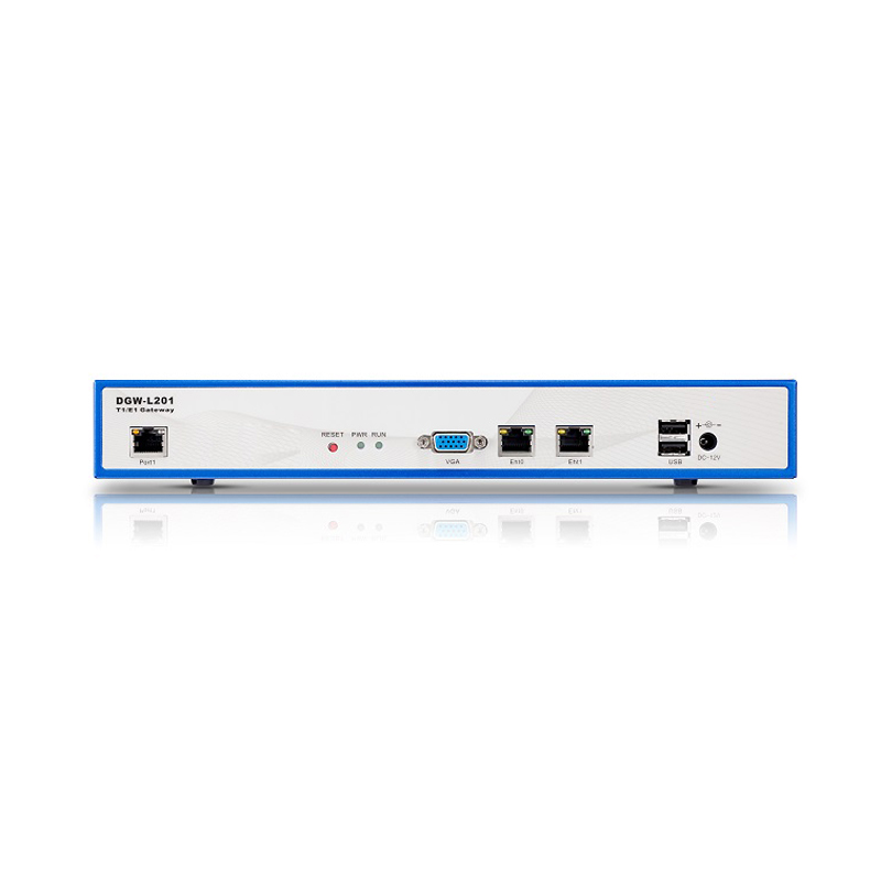 L201 -1 port software-selectable T1/E1/PRI interface, Support up to 30 concurrent calls L202 -2 port software-selectable T1/E1/PRI interface, Support up to 60 concurrent calls L204 -4 port software-selectable T1/E1/PRI interface, Support up to 120 concurrent calls Specifications Proolin DGW-L20X T1/E1 Gateway is an open source asterisk-based VoIP Gateway solution for operators and call centers. It is a converged media gateway product. This kind of gateway connects traditional telephone system to IP networks and integrates VoIP PBX with the ISDN seamlessly. With friendly GUI, users may easily setup their customized Gateway. Also secondary development can be completed through AMI (Asterisk Management Interface). The DGW-L20X T1/E1 Gateway supports 1/2/4 software-selectable T1/E1/PRI interface and supports up to 120 concurrent calls. Target Applications o Connect legacy PBX systems to low-cost VoIP services o Connect legacy PBX systems to remote sites over private VoIP links o Connect IP PBX systems to legacy TDM services o Phased transition from legacy PBX to IP PBX o Connect virtualized systems to legacy TDM services o Transcoding by connecting systems using varying codecs o Lync connectivity to SIP or legacy TDM providers and SIP or Legacy PBX Technical Specifications o 1/2/4 T1/E1 RJ45 o 2 10/100/1000Mbps Ethernet ports o 2 USB 2.0 ports o 1 VGA port o Maximum Power Consumption: 18W o Power supply specification: 12V/1A o Operation humidity: 10%~90% non-condensing o Operating temperature: 0℃~70℃ o Storage temperature: -40℃~85℃