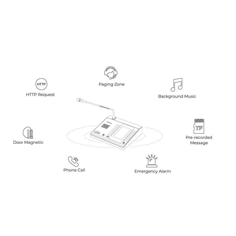 The M100 Dispatch Microphone Console is a versatile and high-performance SIP-enabled device for seamless communication. It features 30 programmable fast keys that can be used for paging, intercom, music playback, outbound phone calls, and emergency alarm activation.With multicast and peer-to-peer technology, it serves as a standalone serverless console for individual and group paging, internal calls, and more.