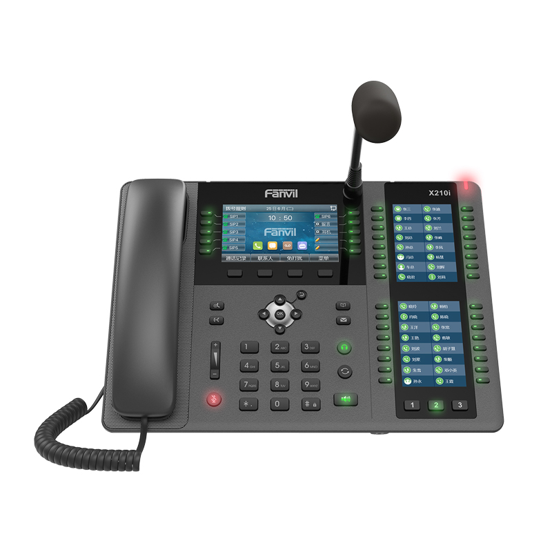 X210i is a visualization paging console phone for industry customer. It is equipped with a gooseneck microphone and supports HD hands-free calling. With intelligent programmable DSS buttons. It can be used as a monitoring center or host for office manager with functions such as make calls for external & internal phones, two-way intercom, monitoring, and broadcasting.