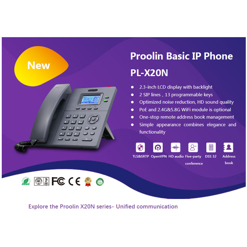 The Proolin X20N series ip phone are simple design, intuitive operation, redefine enterprise IP communication, designed for small and medium-sized enterprises to create efficient and intelligent communication experience.