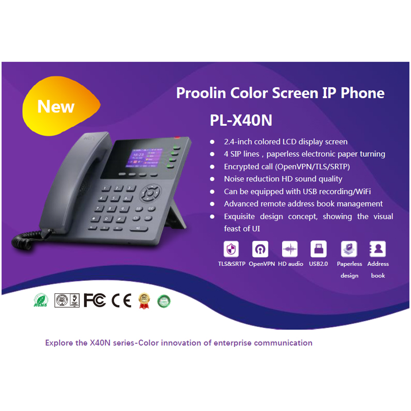 The Proolin X40N series ip phone are simple design, intuitive operation, redefine enterprise IP communication, designed for small and medium-sized enterprises to create efficient and intelligent communication experience.