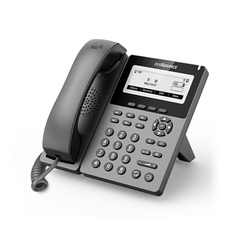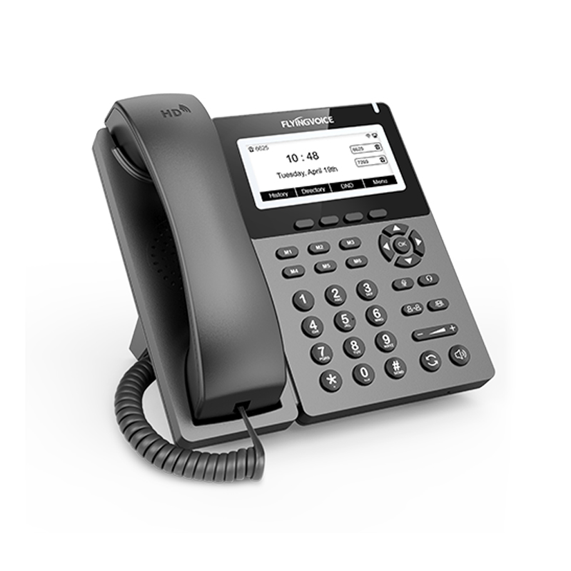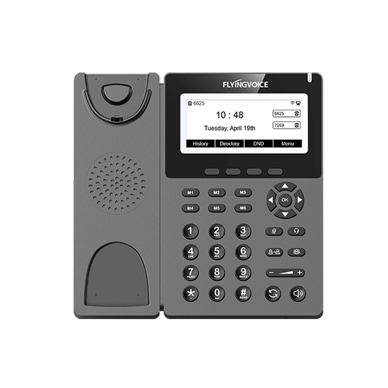 Flyingvoice P22G Enterprise Widescreen Wi-Fi Phone is equipped with a 384×160 pixel black and white screen with backlight. And P22G has 6 speed dial M keys, to achieve a one-click speed dial, easy to operate, and improves call efficiency.