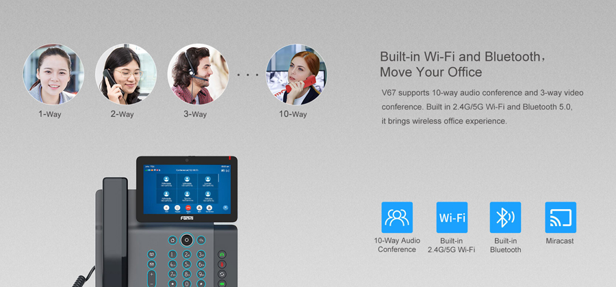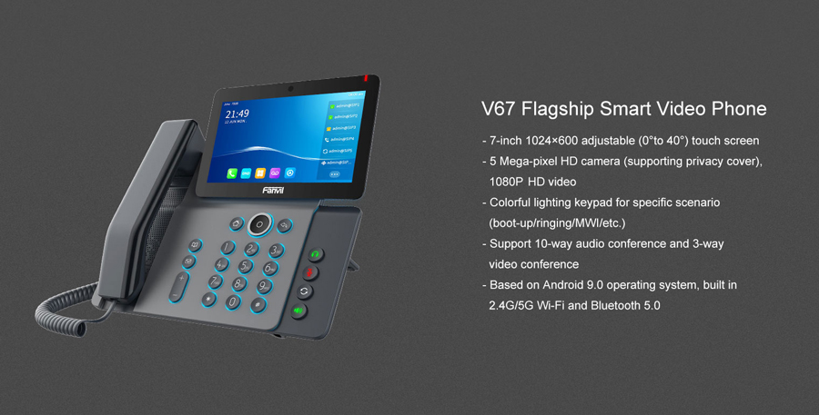 V67 is more than an efficient telephone but a delicate work of art, providing a smart and smooth business communication experience for executives and managers. As the flagship video phone featuring an adjustable touch screen and a cool lighting keypad, V67 is a perfect combination of elegant outside and powerful inside.
