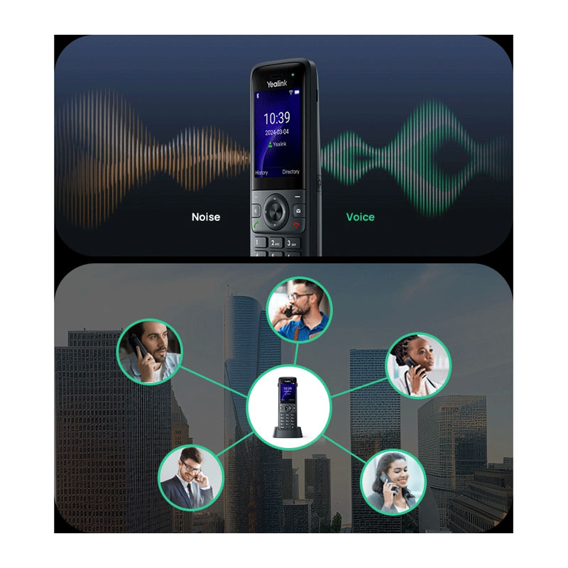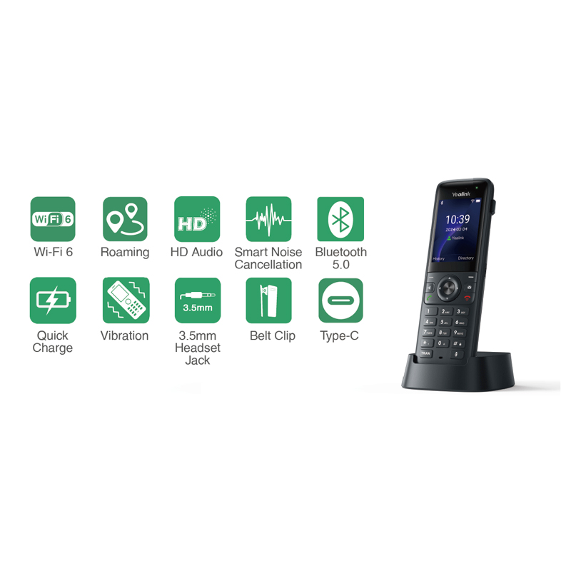 Yealink AX83H-Enterprise portable Wi-Fi IP color screen phone that meets wireless communication need. It supports 4 SIP accounts and features a 2.4-inch color display.