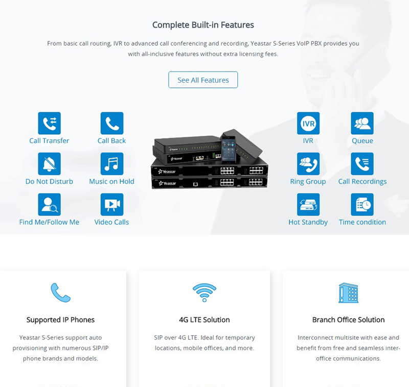 The Model - S20 Yeastar IP PBX is a compact entry-level small business phone system. It’s built to be simple to use and powerful in production. reliable and feature-rich PBX system.
