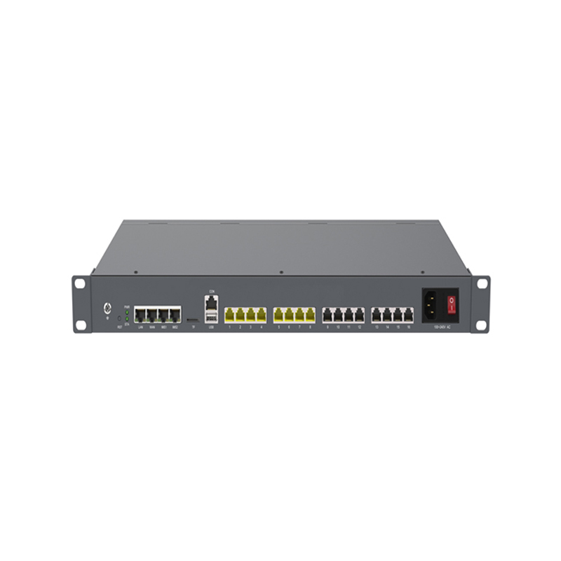 1. 1 * WAN port, 1 * LAN port, 2 custom IMS ports, FXO interface plug detection. 2. SIP short message support can be manually enabled, and the SIP terminal itself needs to support sending and receiving short messages. 3. The outgoing call route can add a number suffix to automatically add a # at the end of the outgoing call number, improving the response speed of the optical modem. 4. It supports importing and exporting incoming and outgoing call routes, reducing the difficulty of operation during large-scale networking. 5. The call recording supports online trial listening, After trial listening, download as needed. 6. Optimize the simulation interface driver to improve noise reduction effect 7. Supports SIP protocol, TCP/UDP/TLS multiple bearer modes, and SRTP voice encryption. 8. Supports multiple audio and video encoding and decoding methods, including alaw, ulam, g729, g722, g726, gsm, ilbc, h264, and vp8. 9. Support voice calls, call recording, conference calls, broadcasting, intelligent routing, multi-party calls, remote networking, and multi machine interconnection. 10. IVR intelligent voice navigation, multi-level navigation in both Chinese and English, black and white lists, extension ringtones, ringing groups, call queues, hotline calls, 11. Point to point video call, call forwarding, call interception, relay team, internal team, call back when busy, fax transmission, T38 fax. 12. Call parking, call waiting, call following, speed dialing, extension roaming, password lock, number one communication. 13. Call forced insertion, call forced disconnection, call time limit, call monitoring, confidential language monitoring, secretary function, 14. API interface, call log, no disturbance, wake-up call, voice message, message to email. 15. Number one multi machine, remote registration, jitter buffering, echo cancellation, 16. USB storage extension, TF card storage extension, Samba cloud storage extension. 17. Multilingual web management, status indication, recording tools, network packet capture tools, network testing tools, 18. Network firewall, SIP automatic defense, WEB login defense, SIP registration security policy (IP address restriction, user agent restriction)