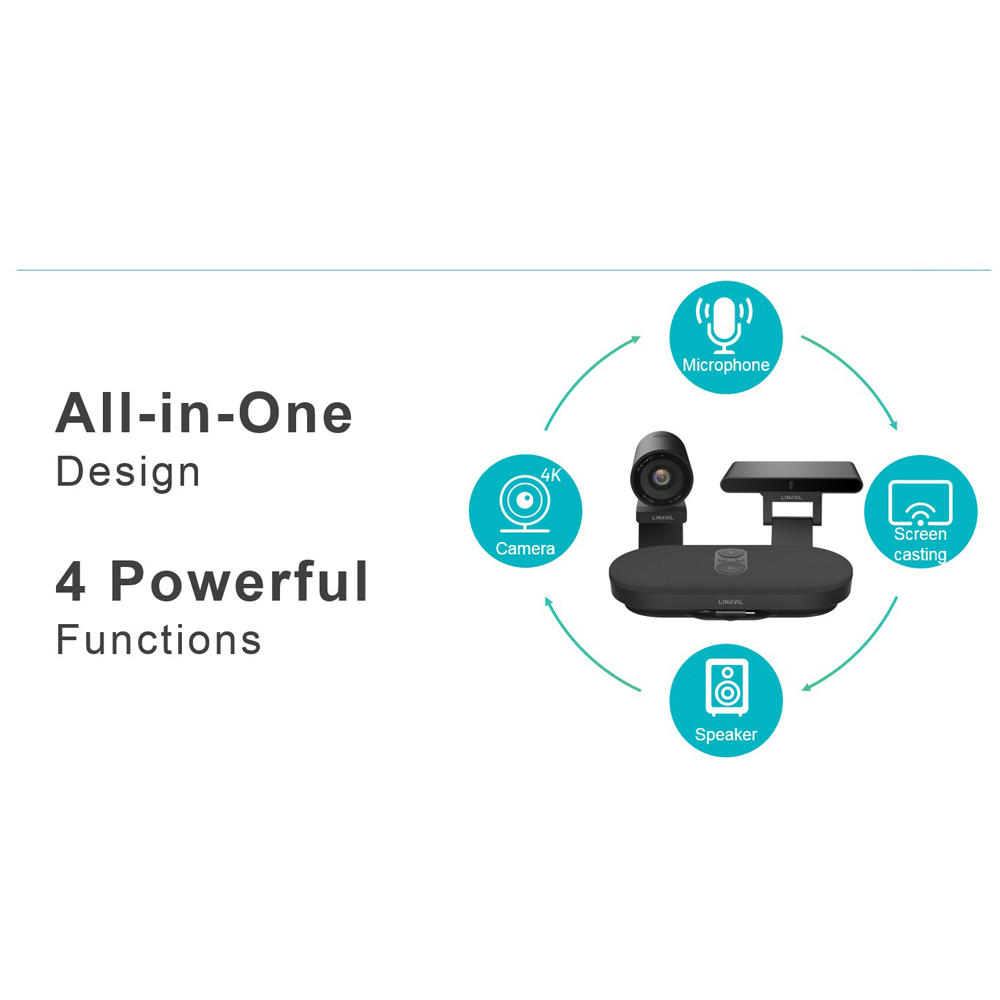 Designed for small & medium meeting rooms up to 20m², it consists of a unique speakerphone MS10 that supports wireless screencasting, a receiver RC10, and a USB camera CM70. CA400 achieves far-field voice pickup, delivering HD crystal sound. Participants can also wirelessly cast at 4K and access to FHD video streaming.
